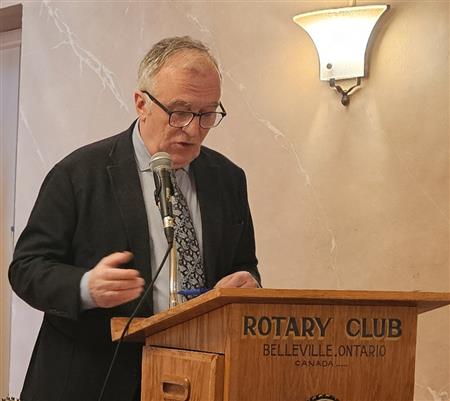 Past President Tracy Bray was pleased to introduce the speaker today, His Worship Mayor Neil Ellis, the 77th Mayor of the City of Belleville, Ontario. Mayor Ellis is a proud lifelong resident of Belleville, deeply rooted in our community. He entered public office in 2006, first serving as Mayor. In 2015 to 2021, Mayor Ellis served as a Member of Parliament for the Bay of Quinte until 2021, chairing the Standing Committee on Veterans Affairs and serving as Parliamentary Secretary to the Minister of Agriculture and Agri-Food. He returned to municipal service in 2022 with a renewed focus on addressing the challenges facing Belleville, including healthcare recruitment, affordable housing and long-term economic and infrastructure planning, always with a strong emphasis on collaboration and community engagement. Mayor Ellis holds a Bachelor of Arts in Law and Psychology from Carleton University and professional designations through McMaster University's Directors College. A dedicated civic leader who believes that the work of municipal government matters most in the daily lives of people who live and work in the community.