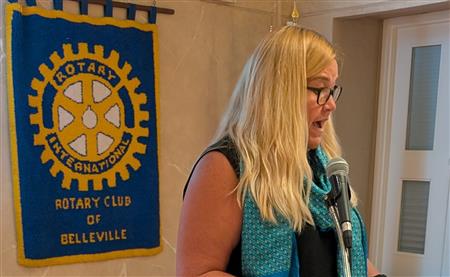 Niecy Dillon-Tyrovolas is the Rotary District Governor for 7070 for July 2025 to June 2026 and was very appreciative of the invitation to speak to the Rotary Club of Belleville on July 31, 2025. The District Governor started by saying thank you to the Club and the members for serving the community as Rotarians. Rotary runs on the passion and energy of the membership. This Rotary Year's slogan is Unite For Good and it is safe to say it's not just a slogan. Together, united, Rotary can do much more, do good together. That is the message Rotary wants to publicize in every community. Internationally, Rotary is taking action for change as their Rotary Action Plan, a strategic road map that will help Rotary better connect with each other, grow as an organization and more effectively share the stories of how Rotary is making a difference in communities. Together Rotary sees a world where people unite and take action to create lasting change across the globe in our communities and in ourselves.There are four pillars to the Rotary Action Plan and they are: